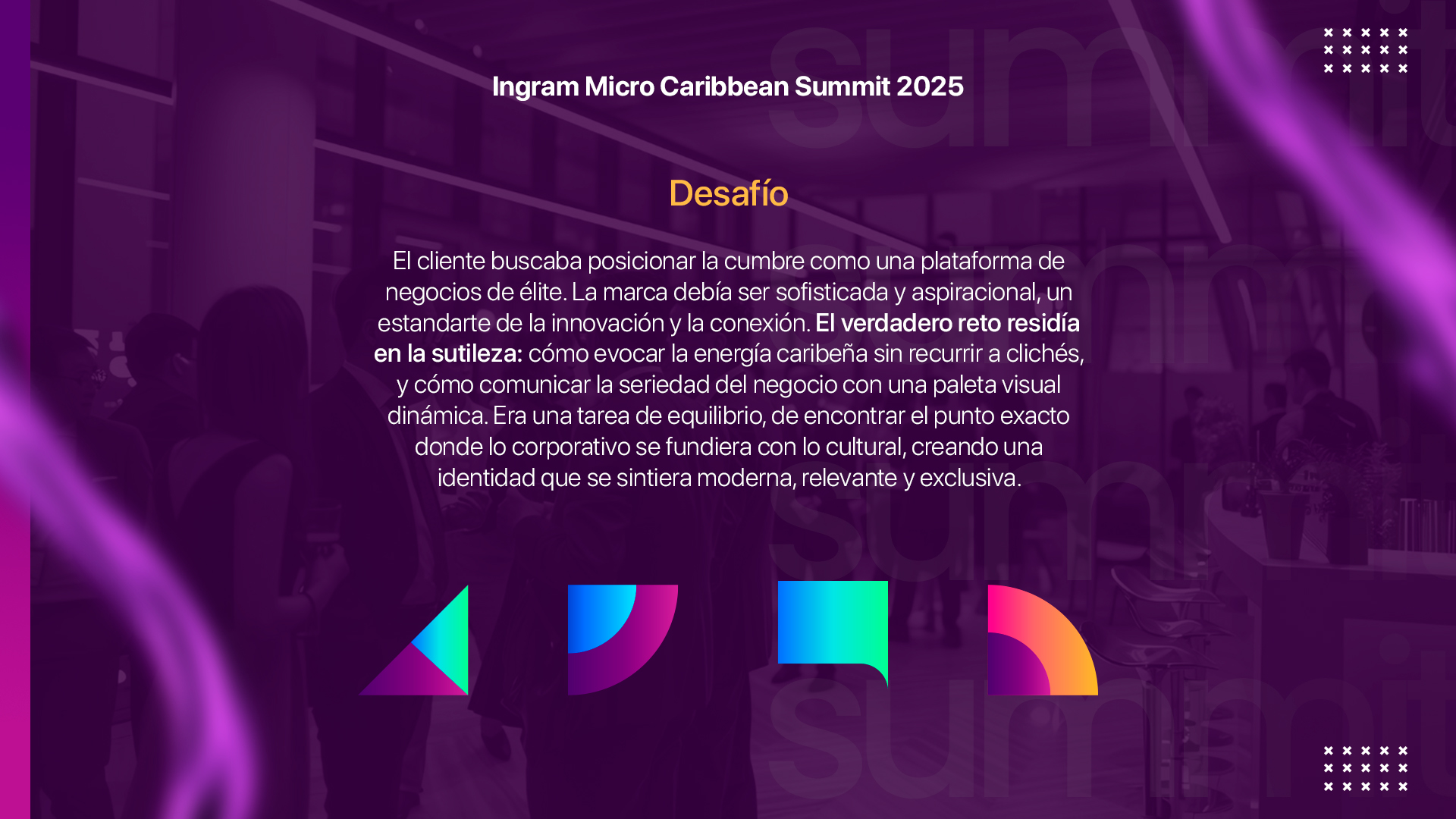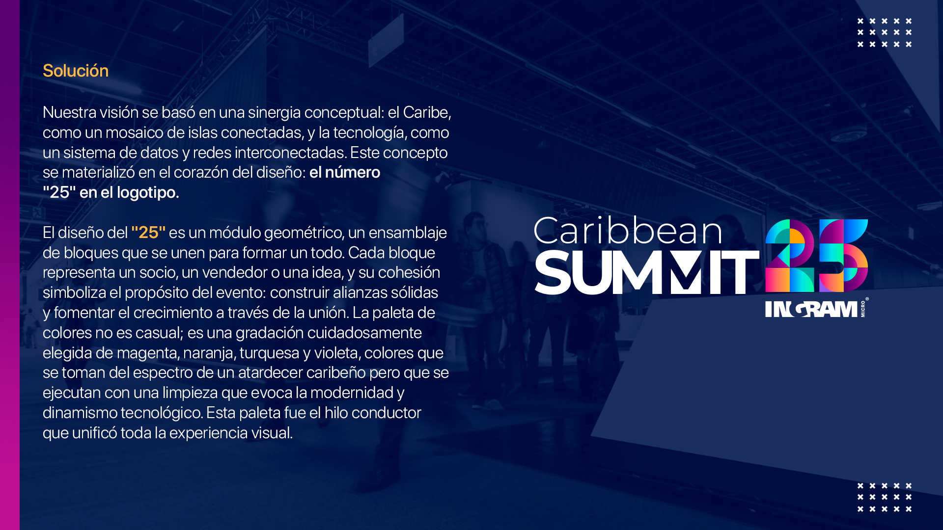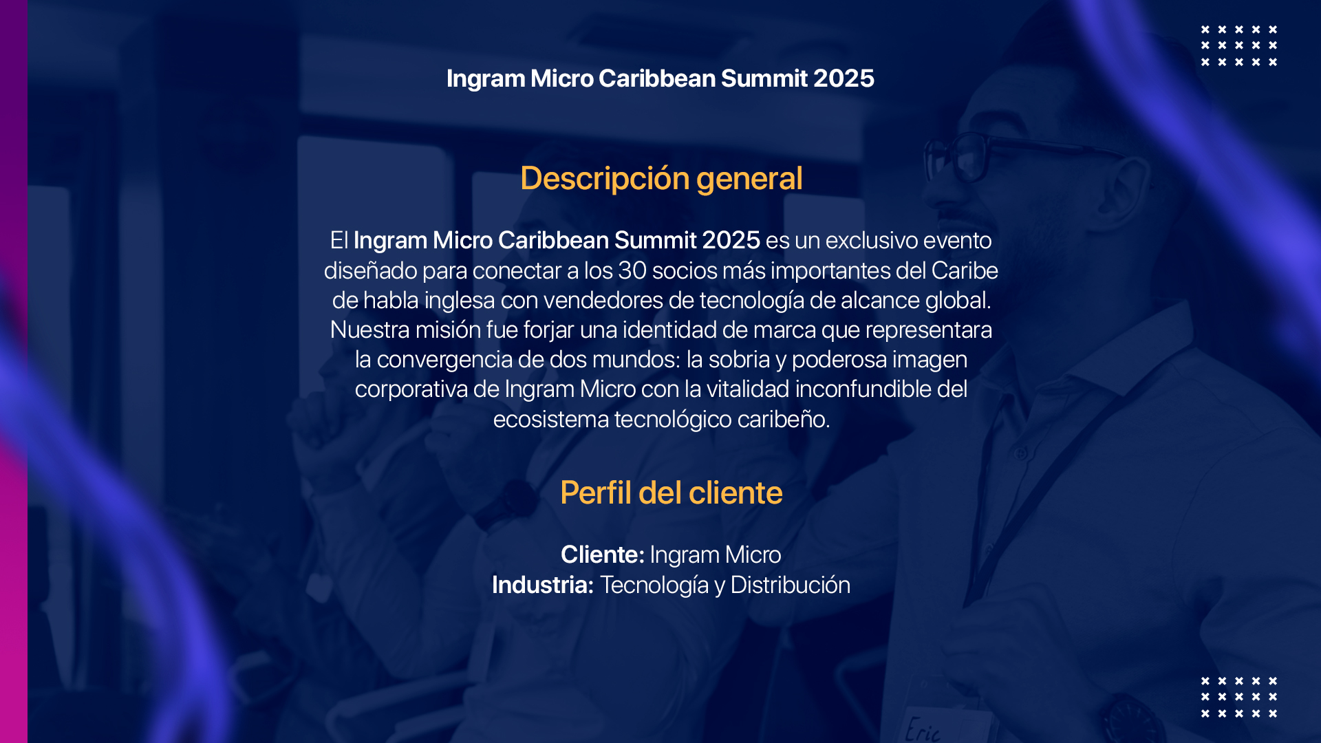 The Ingram Micro Caribbean Summit 2025 is an exclusive event designed to connect the 30 most important English-speaking Caribbean partners with globally recognized technology vendors. Our mission was to forge a brand identity that represented the convergence of two worlds: the sober and powerful corporate image of Ingram Micro with the unmistakable vitality of the Caribbean technology ecosystem.